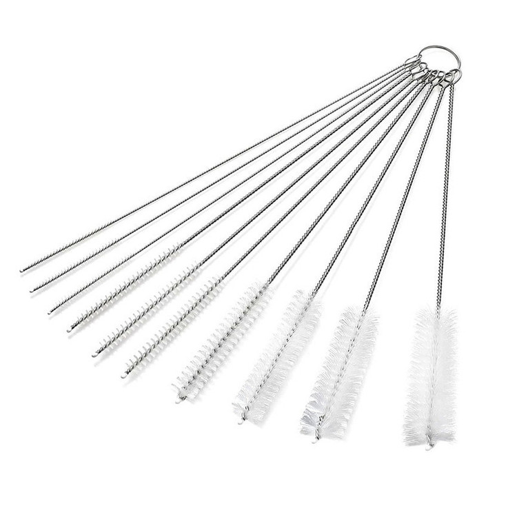 مجموعه 10 عددی با سایزهای مختلف از جنس استیل ضد زنگ مناسب برای شستشوی انواع نی ، شیشه شیر و قوری