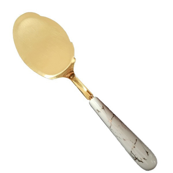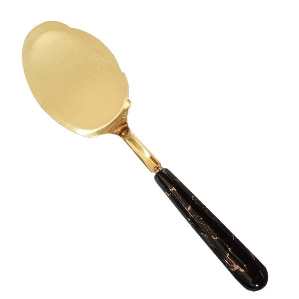 این کفگیر با دسته ی سرامیکی طرح ماربل و بدنه ی طلایی رنگ دارای ظاهری بسیار زیبا و استحکام عالی میباشد