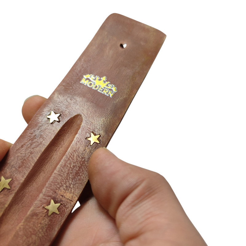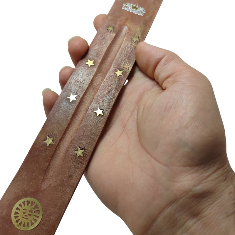 جاعودی چوبی مستطیلی از برند مدرن، با طراحی تخت و مینیمال، انتخابی نفیس و باکلاس برای ایجاد فضایی آرامشبخش و معطر در منزل یا محل کار شماست. این محصول از چوب باکیفیت با رنگی گرم و دلنشین ساخته شده که با ستارههای ظریف برنزی و نقوش هندسی تزئین شده است و به دلیل پرداخت سطحی بسیار عالی، حسی از اصالت و هنر دست را به بیننده منتقل میکند. طراحی ارگونومیک و کشیده این جاعودی به گونهای است که خاکستر عود را به خوبی در خود جای میدهد و لوگوی مدرن به صورت طلاکوب بر روی بدنه آن نقش بسته است تا کیفیت برتر و هویت متمایز این کالای دکوراتیو را تضمین نماید.