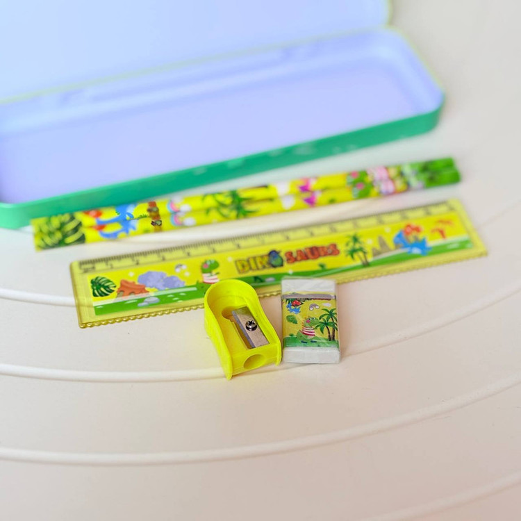 محتویات بسته: پاک کن , تراش , جامدادی , خطکش , مداد