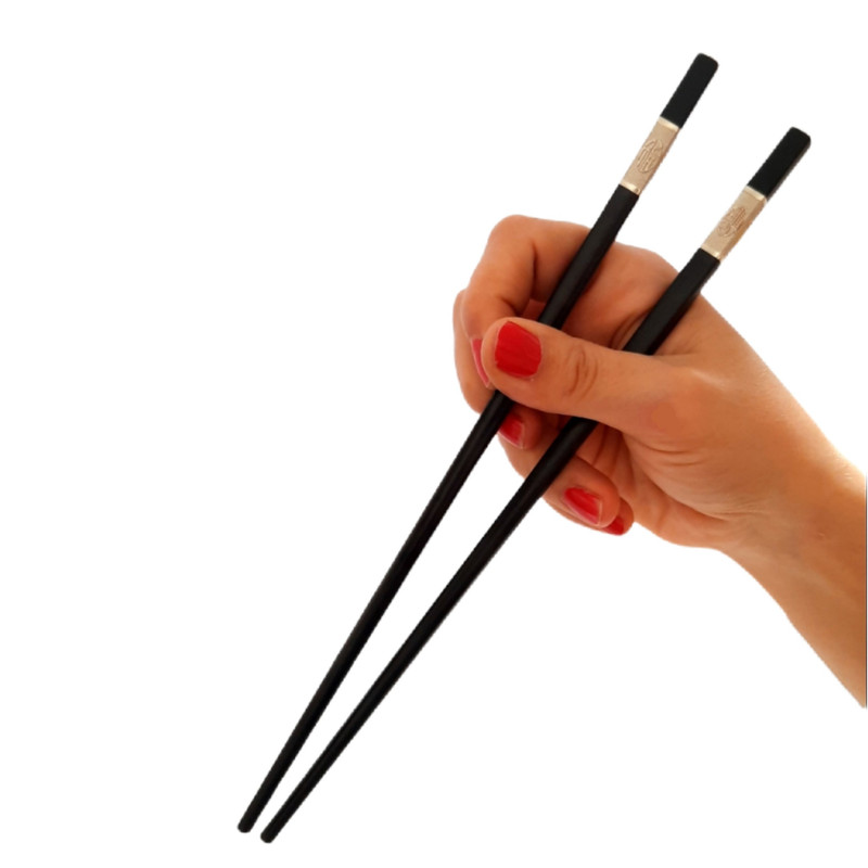 این چاپستیک از جنس ملامین قابل شستشو بوده که در بالای آن طرح فلزی نقره ای با حرف ژاپنی درج شده است.