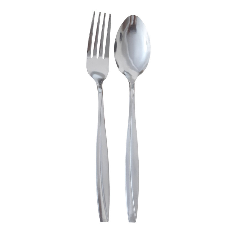 - رنگ ارایه شده ( استیل ) مطابق با عکس می باشد - شامل 6 عدد قاشق و 6 عدد چنگال غذا خوری