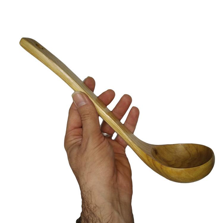 ملاقه چوبی از جنس چوب جنگلی بسیار مقاوم و با دوام و پرداخت عالی همراه با رگه های طبیعی است . این محصول روغن خورده از روغن های گیاهی خراطی میباشد که باعث میشود کار ابگریز باشد . با توجه به نحوه طراحی آن که از خمیدگی دسته و گودی قسمت اصلی برخوردار است میتوان آن را در سرو غذا های رقیق (سوپ ، آش ، انواع خورشت و آبگوشت) استفاده کرد و به شما بسیار کمک می کند و پایه ثابت آشپزی شما میشود .