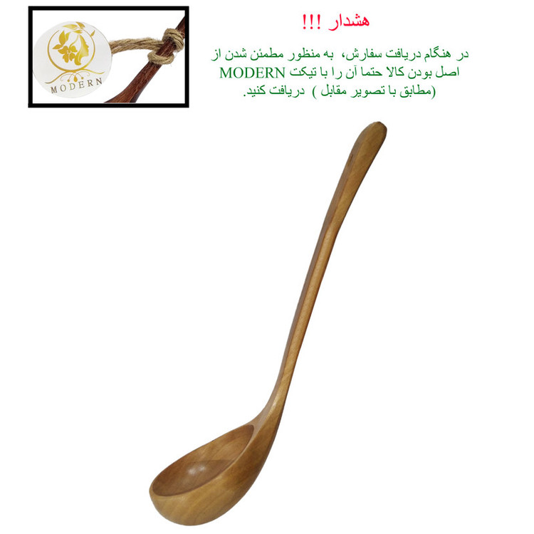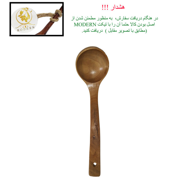 ملاقه چوبی از جنس چوب جنگلی بسیار مقاوم و با دوام و پرداخت عالی همراه با رگه های طبیعی است . این محصول روغن خورده از روغن های گیاهی خراطی میباشد که باعث میشود کار ابگریز باشد . با توجه به نحوه طراحی آن که از خمیدگی دسته و گودی قسمت اصلی برخوردار است میتوان آن را در سرو غذا های رقیق (سوپ ، آش ، انواع خورشت و آبگوشت) استفاده کرد و به شما بسیار کمک می کند و پایه ثابت آشپزی شما میشود .