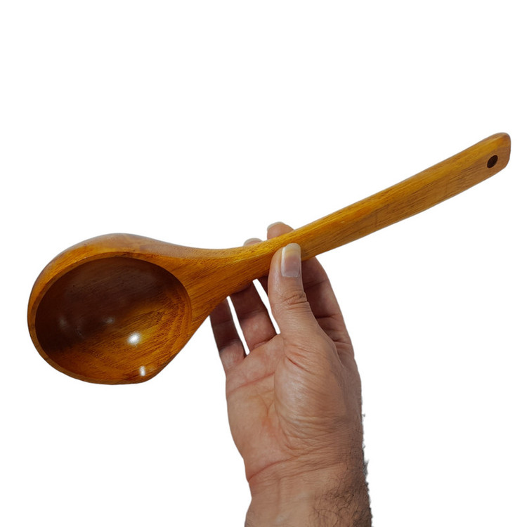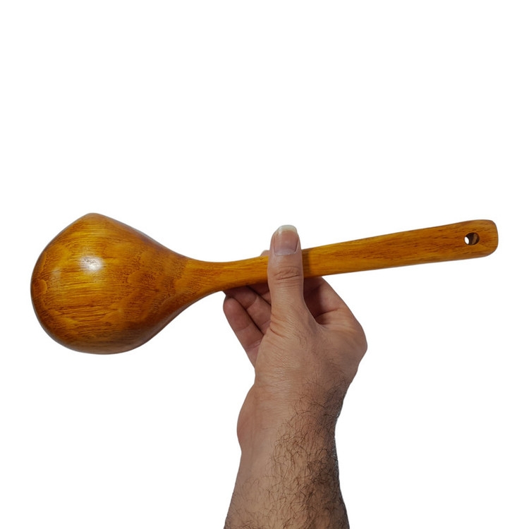 ملاقه چوبی از جنس چوب جنگلی بسیار مقاوم و با دوام و پرداخت عالی همراه با رگه های طبیعی است . این محصول روغن خورده از روغن های گیاهی خراطی میباشد که باعث میشود کار ابگریز باشد . با توجه به نحوه طراحی آن که از خمیدگی دسته و گودی قسمت اصلی و هم چنین انحنا در لبه گودی (جهت آسان ریز بودن مایعات) برخوردار است میتوان آن را در سرو غذا های رقیق (سوپ ، آش ، انواع خورشت و آبگوشت) استفاده کرد و به شما بسیار کمک می کند و پایه ثابت آشپزی شما میشود .
