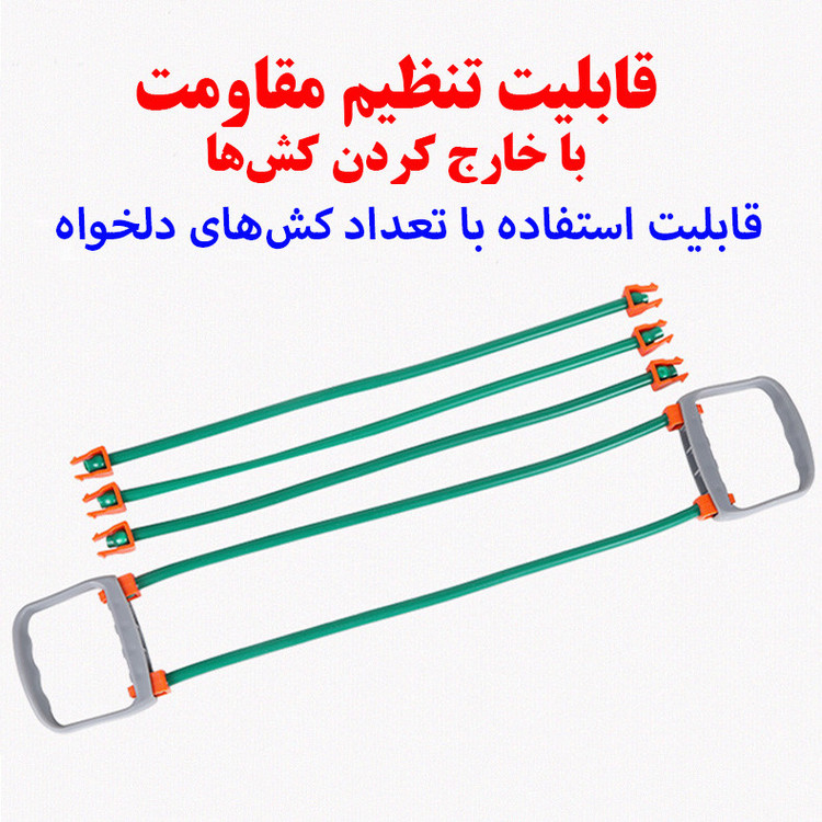کش ورزشی مدل Chest5 با دارا بودن 5 کش با مقاومت 30 پوندی داری مجموع مقاومت 150 پوندی است. این کش ورزشی با داشتن قابلیت تنظیم مقاومت، ابزاری مناسب برای تمامی افراد از حرفهای تا مبتدی است. کشهای محصول به آسانی قابل جدا شدن و اتصال مجدد هستند. در دو انتهای هر کش یک پین قفلشونده وجود دارد که به راحتی میتوان با فشردن ان کش را از جای خود خارج کرد و مقاومت دستگاه را کاهش داد. دسته های محصول به صورت کاملا ارگونومیک طراحی شده تا دست ها در حین تمرین اذیت نشوند.